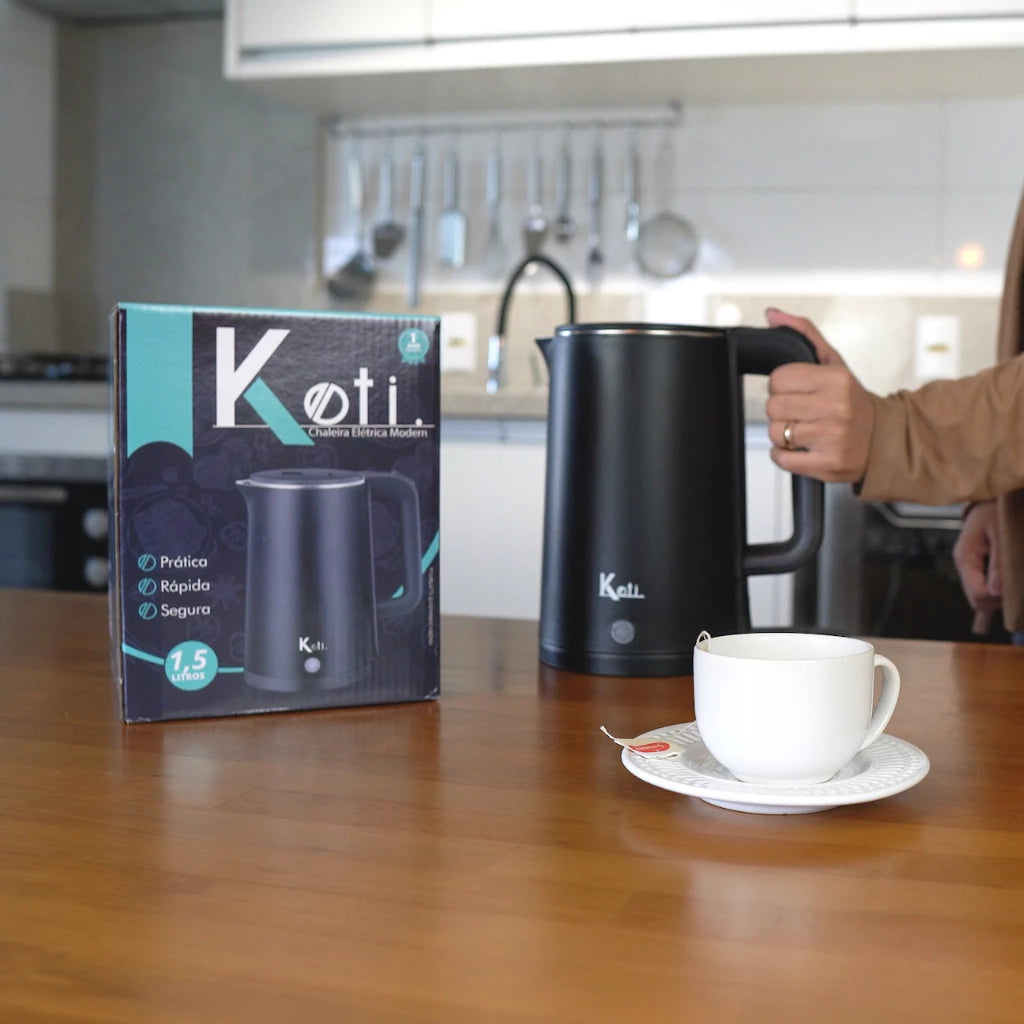 Cansado da demora da água no fogão e da falta de segurança? A solução para seu chá, café ou mate instantâneo chegou! A Chaleira Elétrica KOTI é a ferramenta ideal para aquecer sua água com rapidez e eficiência, garantindo que você tenha sua bebida quente em poucos minutos, sem complicação ou desperdício de energia.