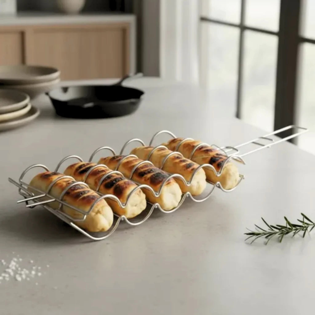 Cansado de ver seu pão de alho cair na brasa ou queimar de um lado só? A solução para ter milho e pão de alho crocantes e saborosos chegou! A Grelha Churrasco EasyFlip é o acessório indispensável que garante que seus acompanhamentos fiquem firmes, assando por igual e com o ponto ideal, sem complicação ou desperdício.